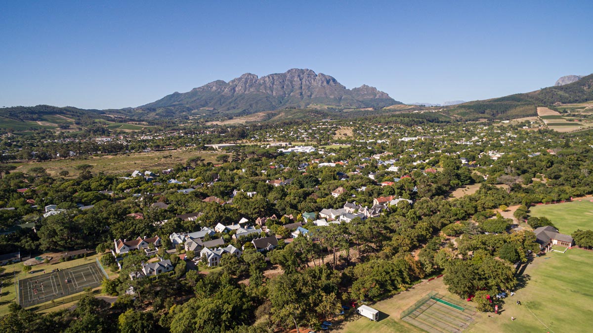 University Town: A part of Stellenbosch, showing the area towards Jonkershoek (to the right, Jasper Boonstra's territory) and the famous Simonsberg mountain.